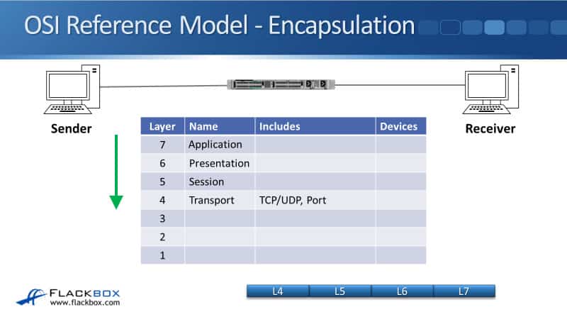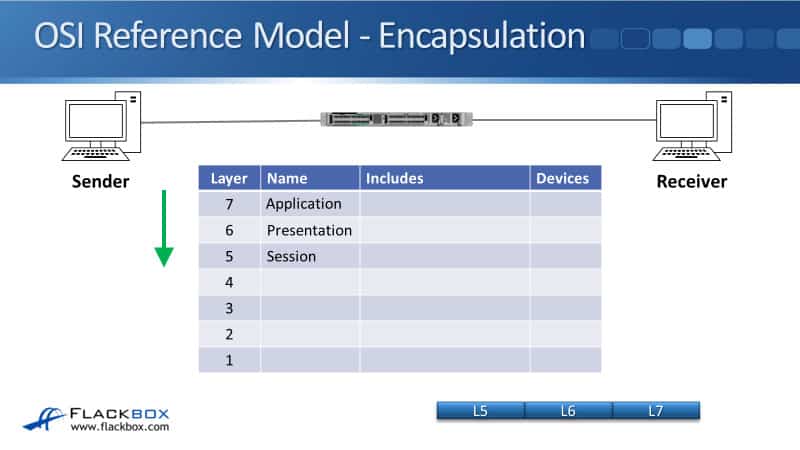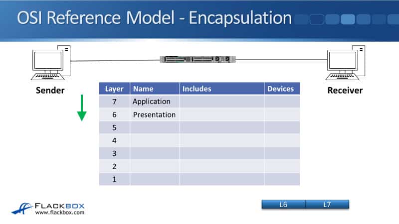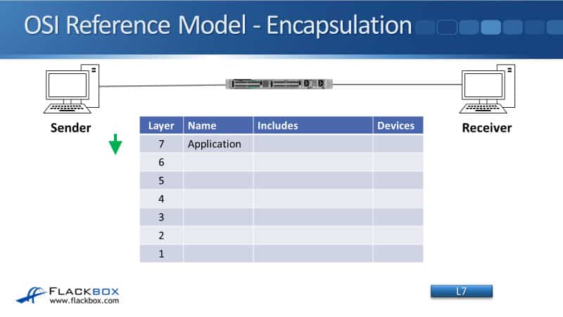 We’ll start by looking at how this fits into the OSI stack. So, we've got a sender on the left, it's going to send some traffic to the receiver on the right. The sender will compose the packet, starting with the Layer 7 information, that's the Application Layer.