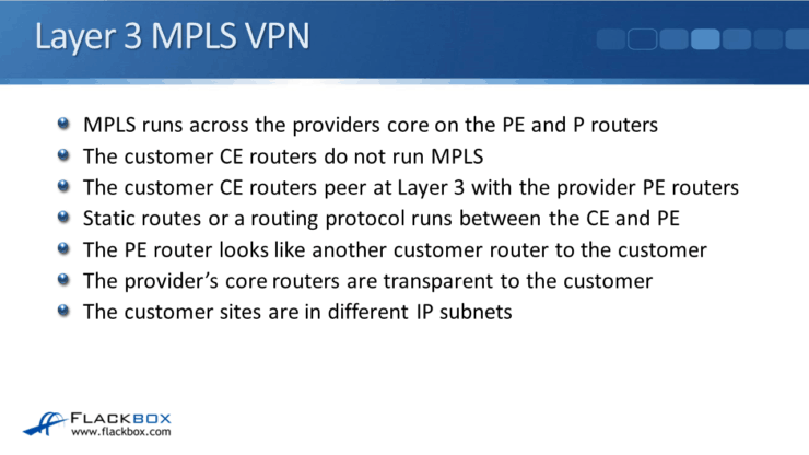 - The providers provide a layer 3 MPLS VPN, thus, our different customer sites will be able to communicate with each other.