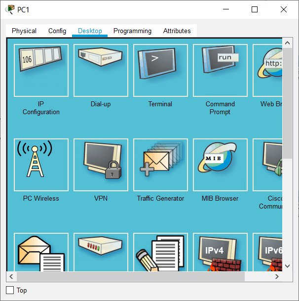 (Click on PC1 then ‘Desktop’ and ‘Command Prompt’ to access its command line interface.)