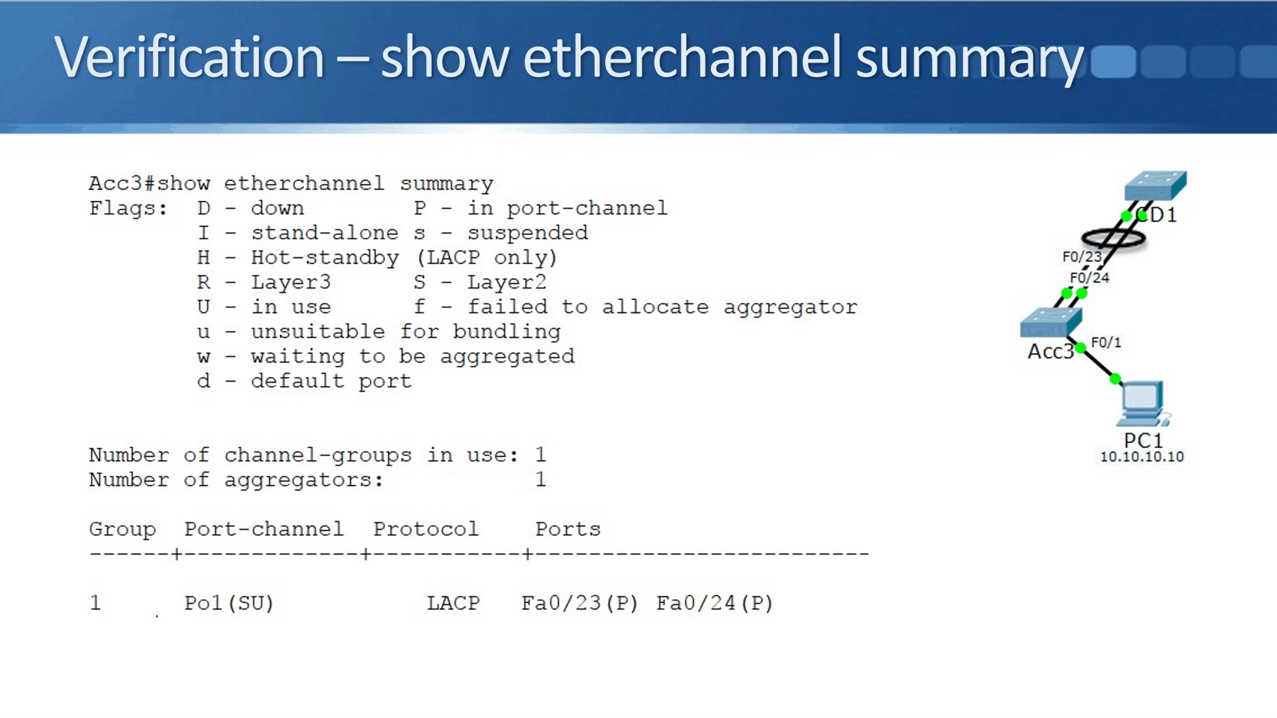 Verification – show etherchannel summary