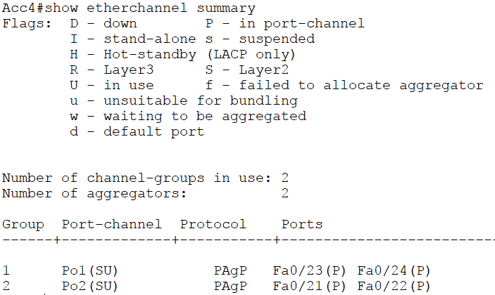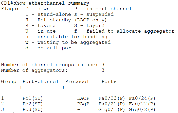 You can also do a ‘show etherchannel’. That will give you more verbose output, but the summary really tells you everything that you need to know.