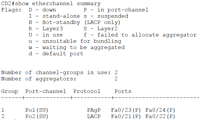 CD2(config-if-range)#channel-group 2 mode active