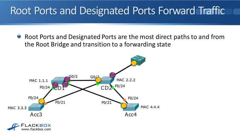 Root Ports and Designated Ports Forward Traffic