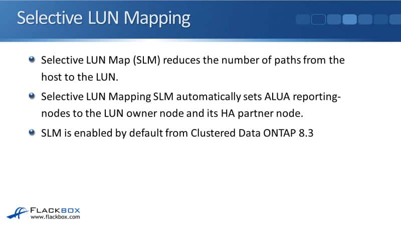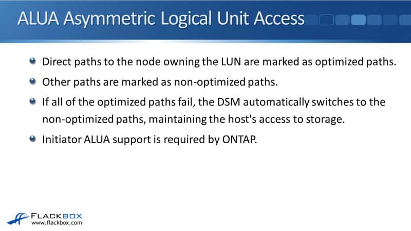 In this NetApp training tutorial, you’ll learn about ALUA and SLM, which stand for Asymmetric Logical Unit Access and Selective LUN Mapping respectively. These are used to control what paths are going to be advertised to the client to access its SAN storage. Scroll down for the video and also text tutorials.
