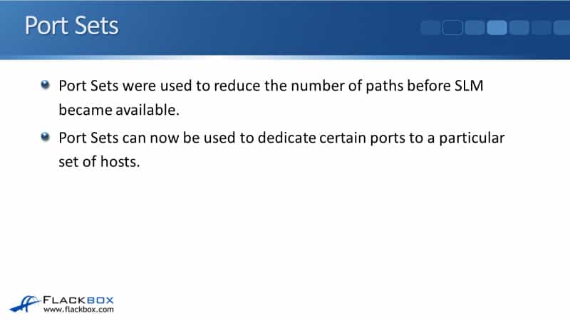 We use port sets now to dedicate certain ports to a particular set of hosts. If you want to have some ports that are dedicated to some hosts for performance reasons, then you can use port sets for that.