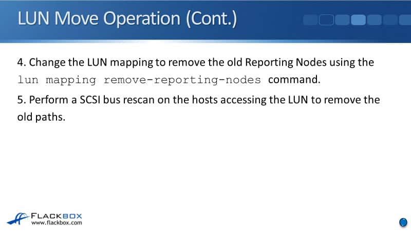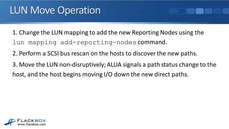 Once that is done, you can now move the LUN. That happens non-disruptively. ALUA signals a path status change to the host and the host begins moving I/O down the new direct paths.