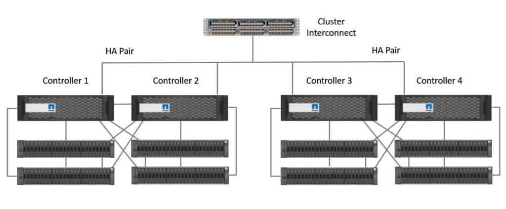 The controllers in a NetApp ONTAP cluster are arranged in High Availability pairs. If we had a 6 node cluster for example, nodes 1 and 2 would be an HA pair, nodes 3 and 4 would be another HA pair, and nodes 5 and 6 would be our final HA pair. See my previous post for a full description of the NetApp ONTAP architecture.