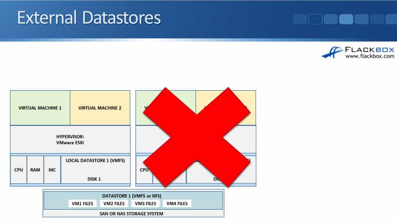We’re not going to be able to run those virtual machines until we recover that physical server. So another way that we can store the files which get around that problem is by using external datastores.