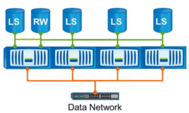 In the diagram below, you’ll see we have a single cluster. We've got the source volume, which is the single read/write copy, and then we've created a Load Sharing Mirror for that source volume on each node in the cluster.