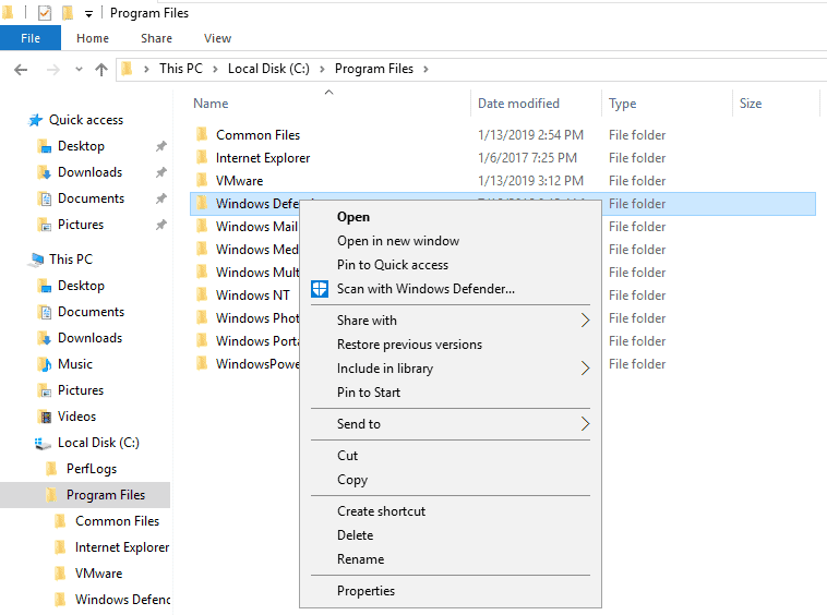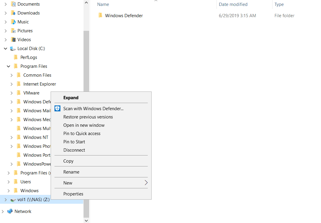 4. Copy and paste the ‘C:\Program Files\Windows Defender’ folder into vol1.