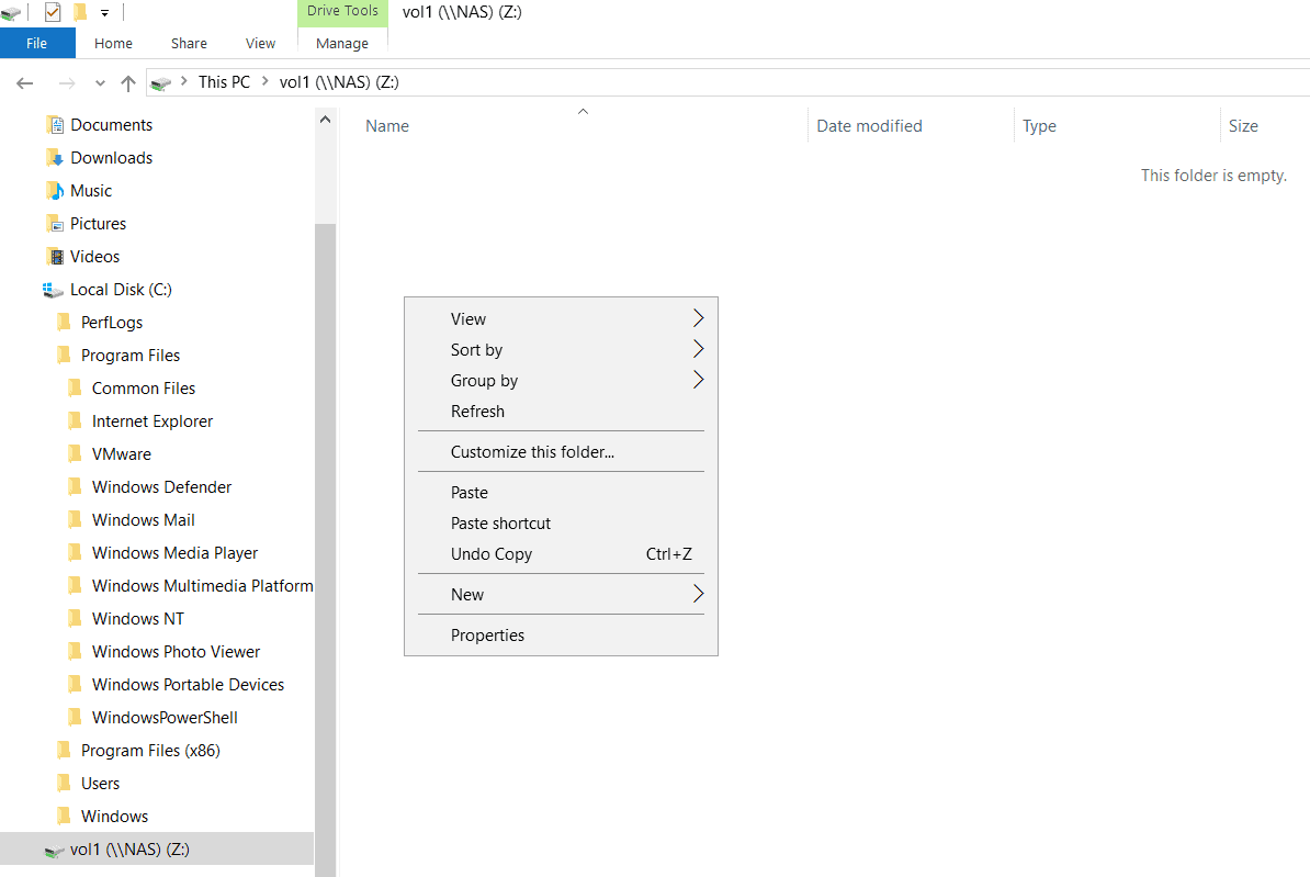 Open Windows File Explorer. Right-click on ‘Network’ and select ‘Map network drive…’