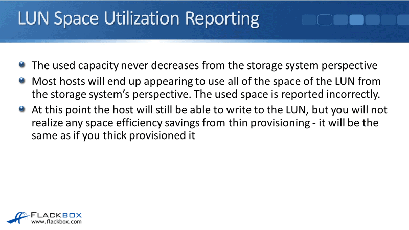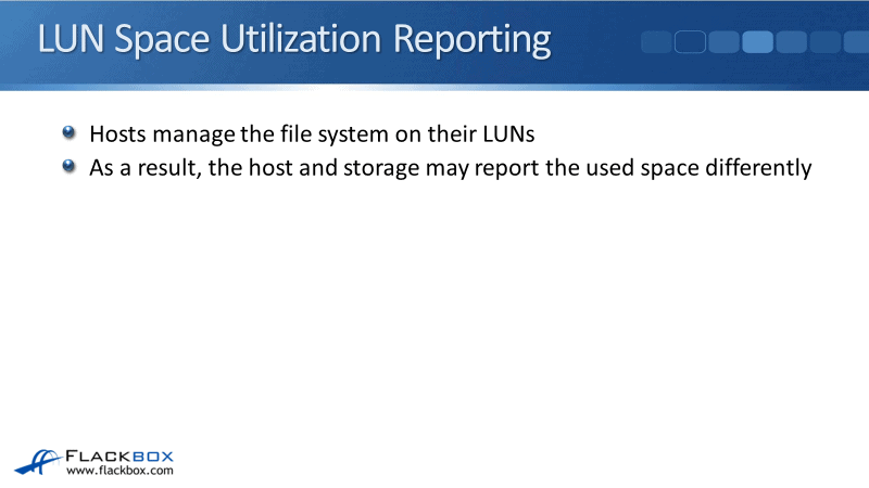 As a result, the host and the storage may report the used space differently because the storage system does not have the same kind of visibility into the file system.