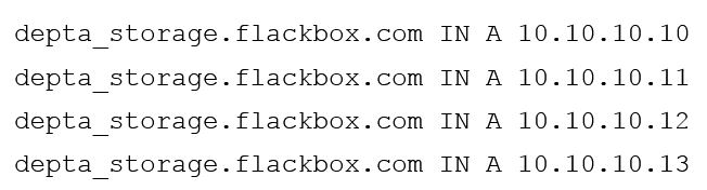 In the example above, we've given our DeptA storage the FQDN “depta_storage.www.flackbox.com”. We configure an A record, using the same FQDN, for each of our LIFs and therefore each of our IP addresses (eg, if you had created 4 LIFs for DeptA with the addresses 10-13, you’d create one record for 10.10.10.10, one for .11, one for .12, one for .13).