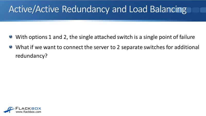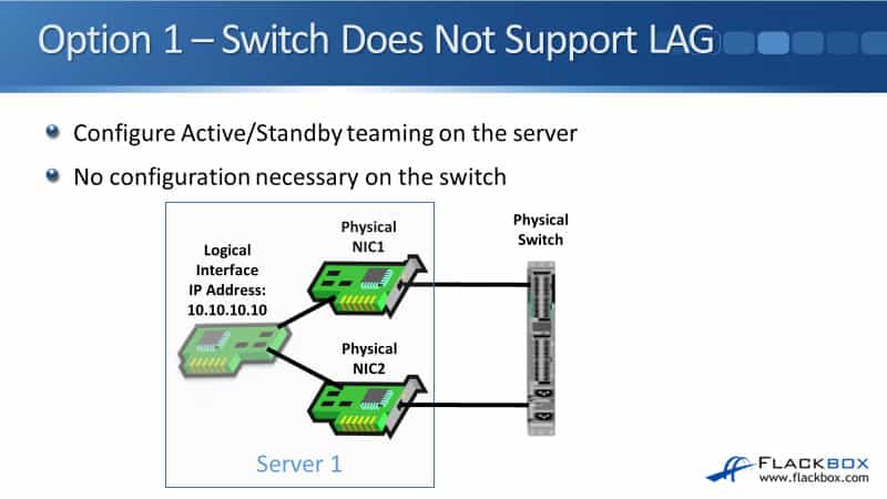 You know how I was saying, why would you ever not use Active/Active? If a server supports Active/Active, but the switch doesn’t, then you can’t do that, but you could still use Active/Standby. Typically, modern switches will always support this.