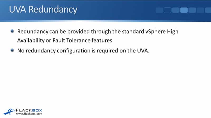 No extra or special redundancy configuration is required on the UVA itself. You just use the standard settings inside VMware.
