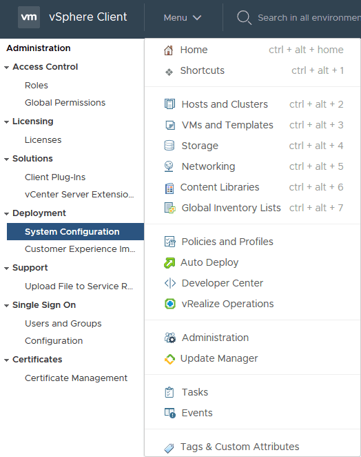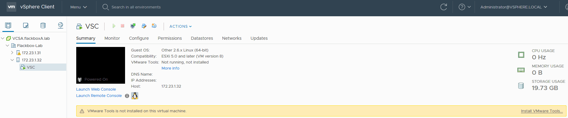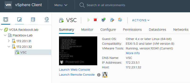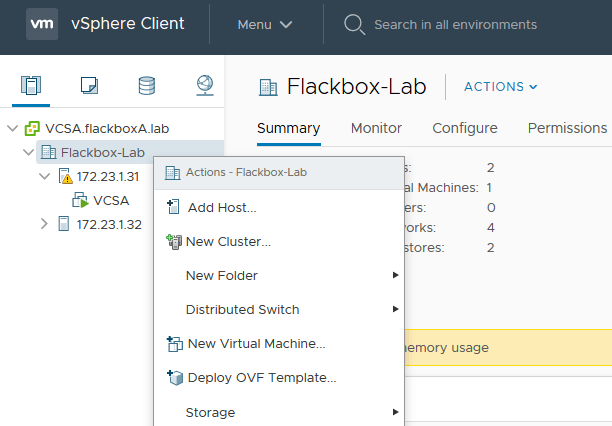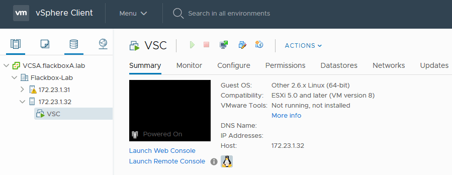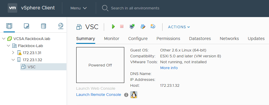 Open a new browser window then Launch vSphere Client (HTML5) at https://vcsa.flackboxa.lab