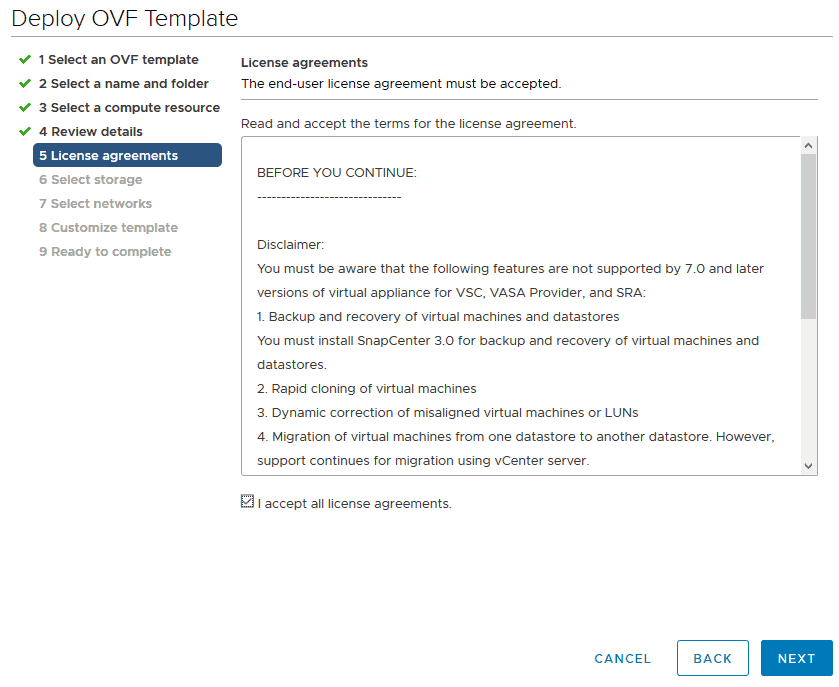 5. Install the Virtual Storage Console virtual machine on the ESXi2 host