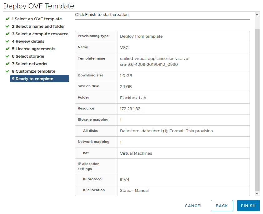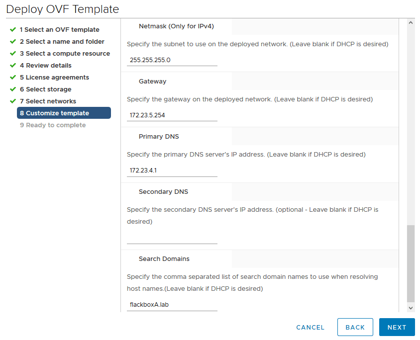 Right-click on the Flackbox-Lab datacentre and select Deploy OVF Template