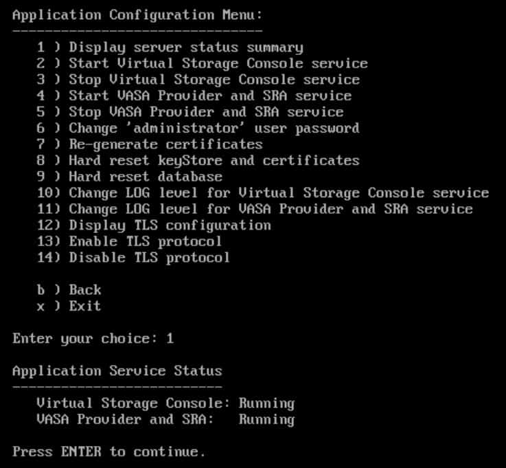 10. Use the VSC Maintenance Console to verify the Virtual Storage Console and VASA Provider and SRA services are running.