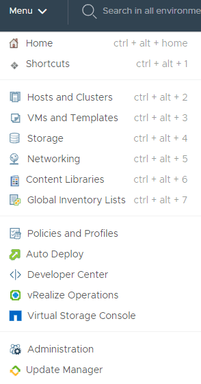 9. Ensure Virtual Storage Console is visible in the vSphere Client menu.