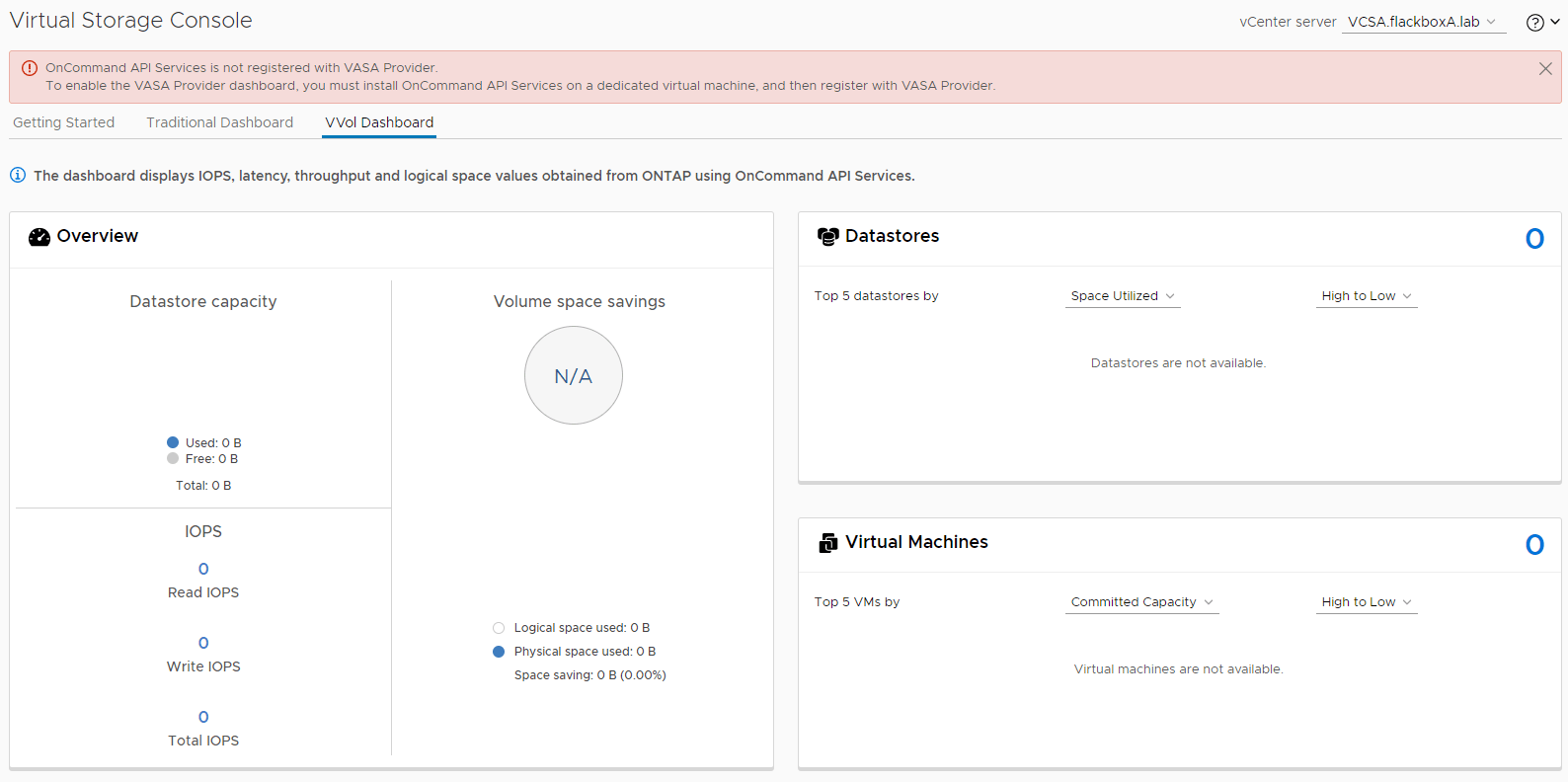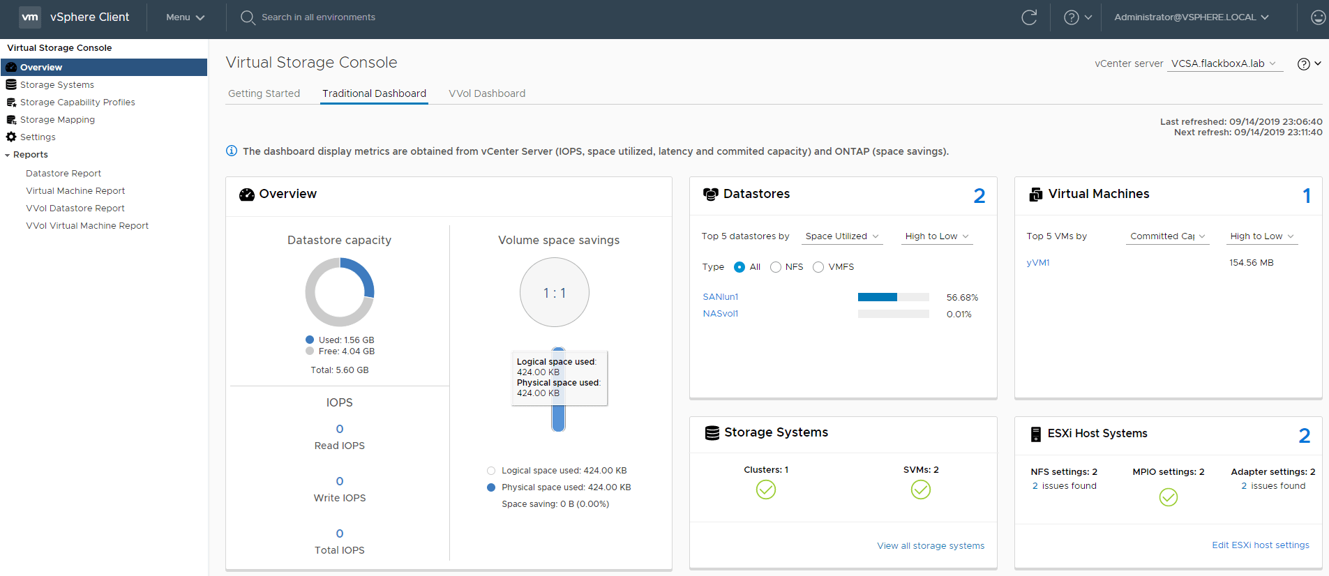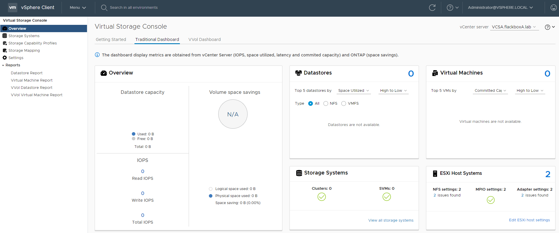 18. View the VSC Traditional Dashboard. What information can you see about the existing NFS and iSCSI datastores now?
