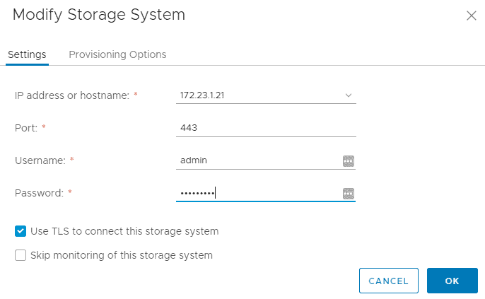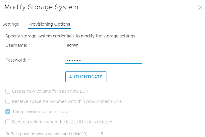 16. Enter the correct credentials to allow VSC to make changes on Cluster2. Ensure that whenever a new LUN is created by VSC, a new volume should also be created for the LUN. The volume should be the same size as the LUN.