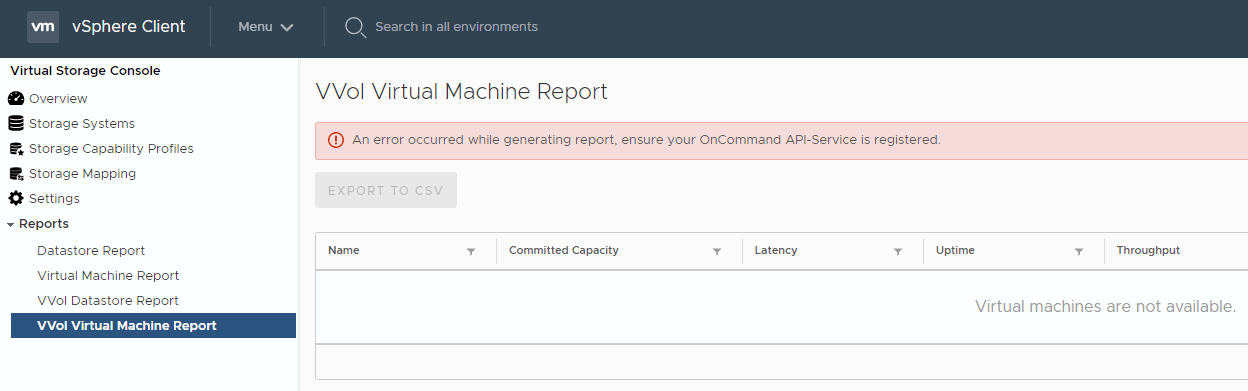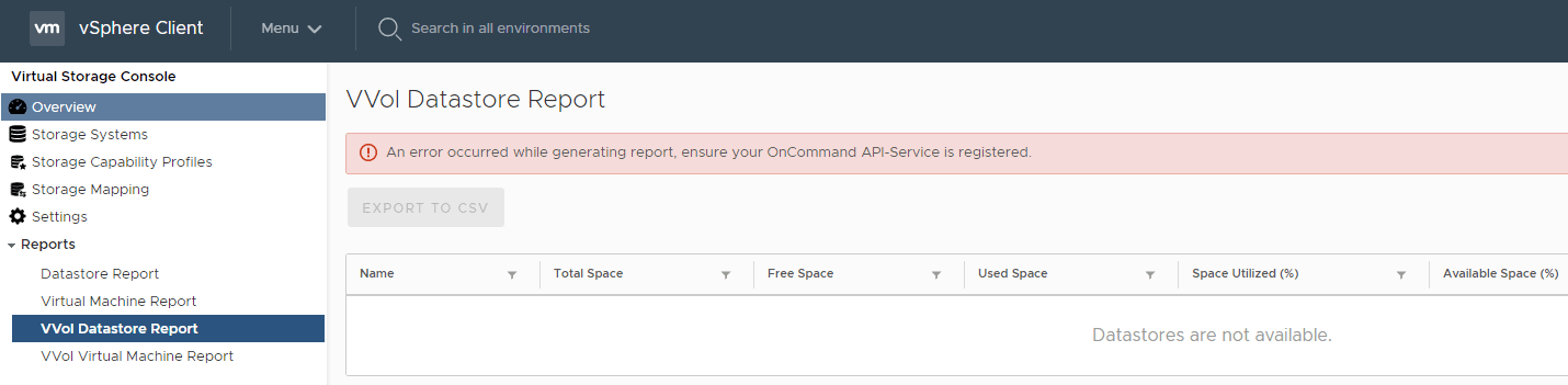 20. View the Datastore Report, Virtual Machine Report, VVol Datastore Report and VVol Virtual Machine Report. What is the issue with the VVol reports?