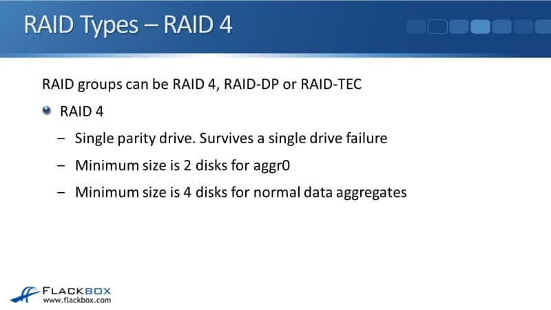 It's more really there for backward compatibility because with the history of ONTAP, when it was first available, it only supported RAID 4 and then RAID-DP came out later. They needed to support the existing RAID 4 aggregates on systems that were being upgraded to the later versions so there's still support for RAID 4.