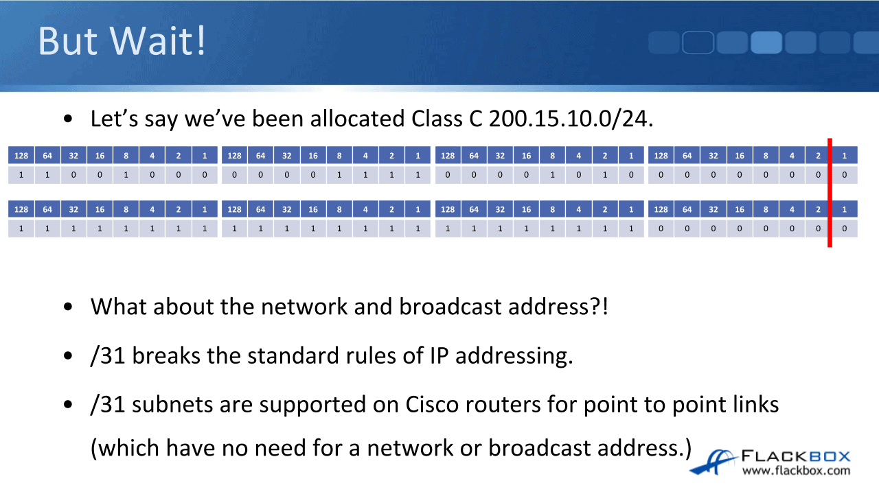 But wait, if we're using a /31, there are only two possible values to assign to the host. What about the network and broadcast address?