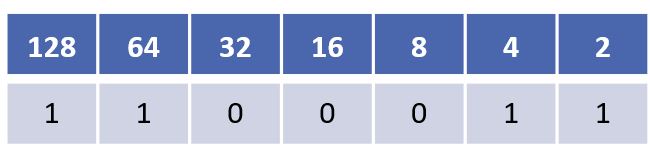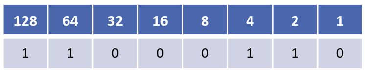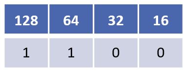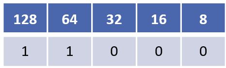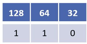 Now that we've got it written down we can quickly add up the '1's to check our answer adds up to the '198' first octet in our 198.22.45.173 IP address.
