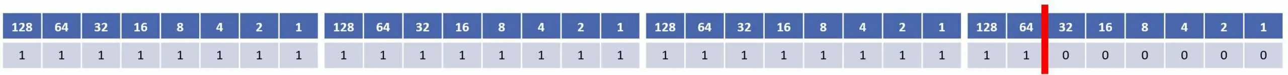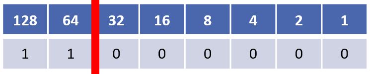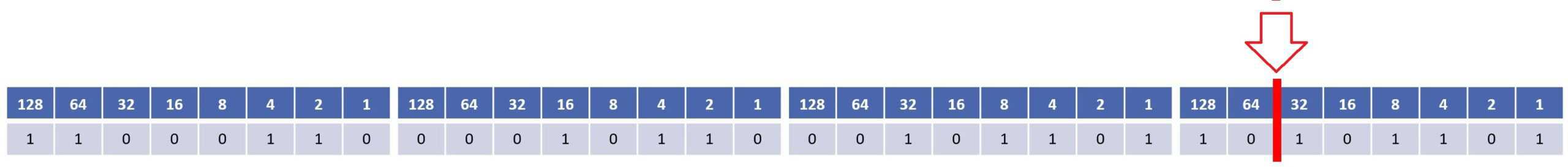 Then we just count whatever it is in the 4th octet’s first two bits to get all 26 bits. I've got a 1 for 128 and a 0 for the 64, so that adds up to 128.