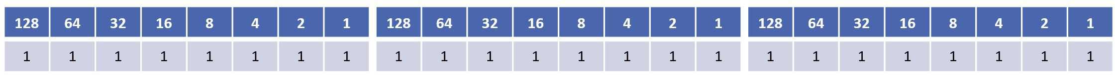 128 + 64 + 32 + 16 + 8 + 4 + 2 + 1 = 255