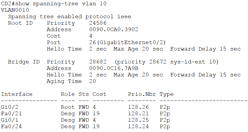 4. Check the other switches to verify CD2 has the next best Bridge Priority.