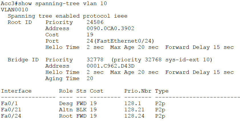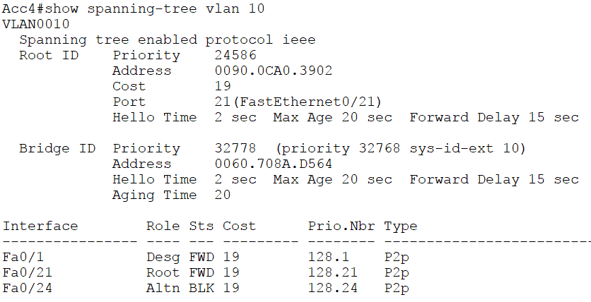 Here, I can see the Root Bridge is still on Core1, and that this has got the next best priority so this will be the second most preferred switch.