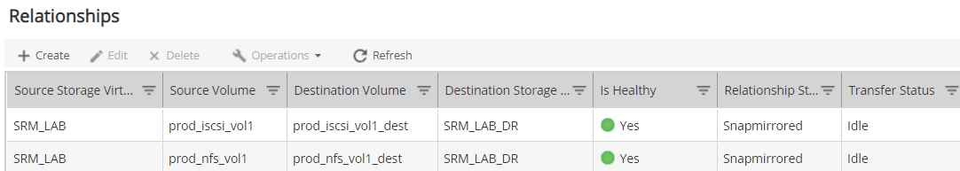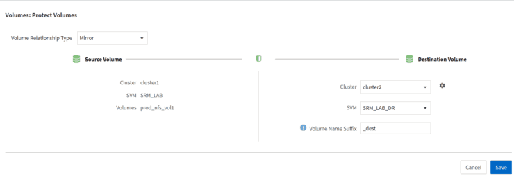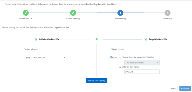 Follow the same steps we used for NFS volume to create Snapmirror relations