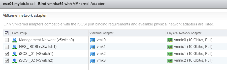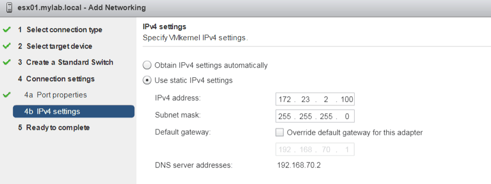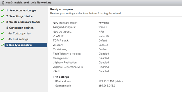 | ESX01 vmk1 (for NFS) | 172.23.2.100 |