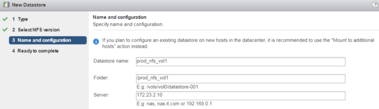 4.5 Configure on ESX/vCenter to mount NFS volume
