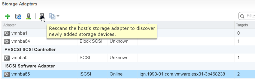 14. Back to ESX02, rescan to discover the replicated iSCSI LUN
