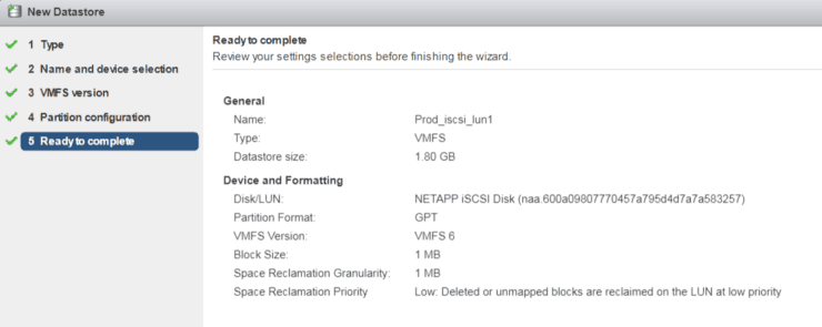 4.6 Configure an iSCSI lun with Data Protection for ESX