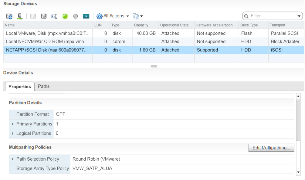 11. Also we can see the default Multipathing Policy for iSCSI LUN is Round Robin (VMware)