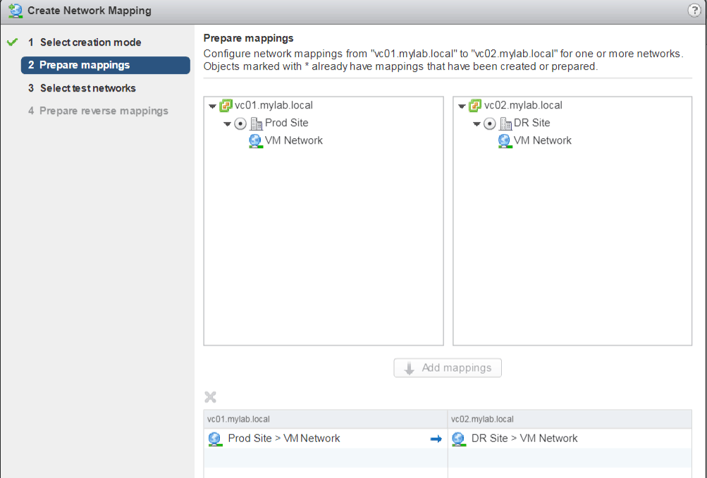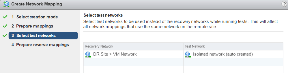 Network at Prod site and DR site may totally different. In worst cases, server need change to a new IP address after server is up at DR site. That why we need configure network mappings correctly.