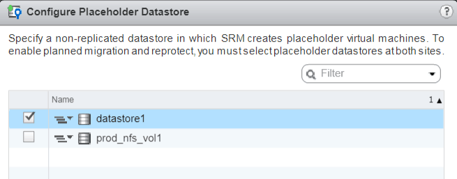 Please Note: placeholder datastore need to be configured at both sites – if re-protect will be configured from DR site to Prod site.
