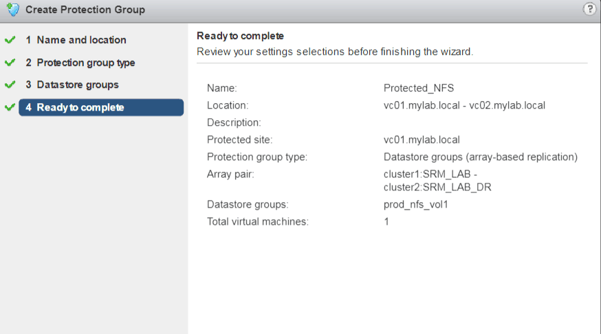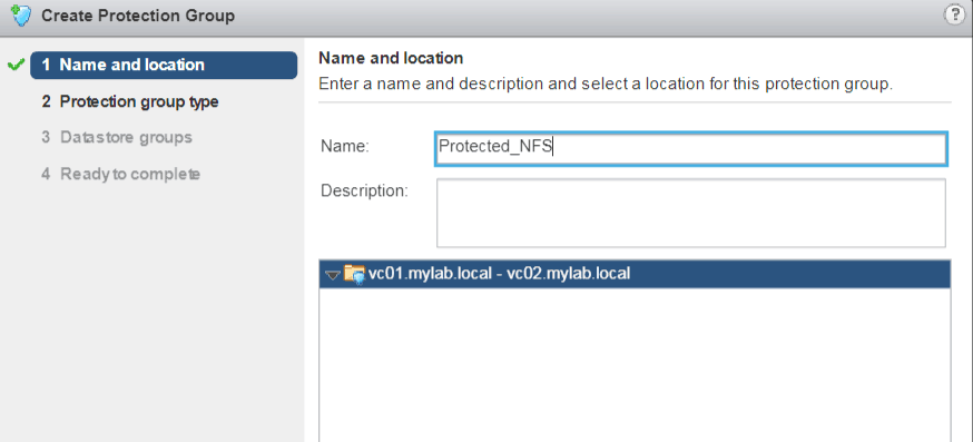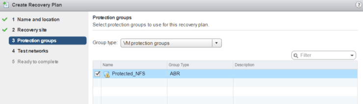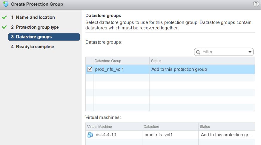3. Selected Datastore Groups to be used for protection group (basically select the lun we enabled snapmirror data protection on NetApp array). It also lists all the VMs on those datastore groups.
