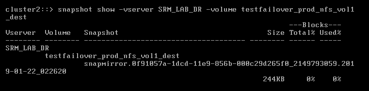There is a new testfailover_xxx snapshot volume been created and presented to VM