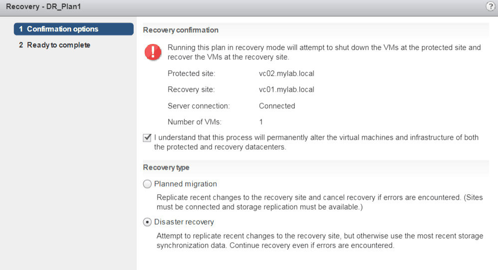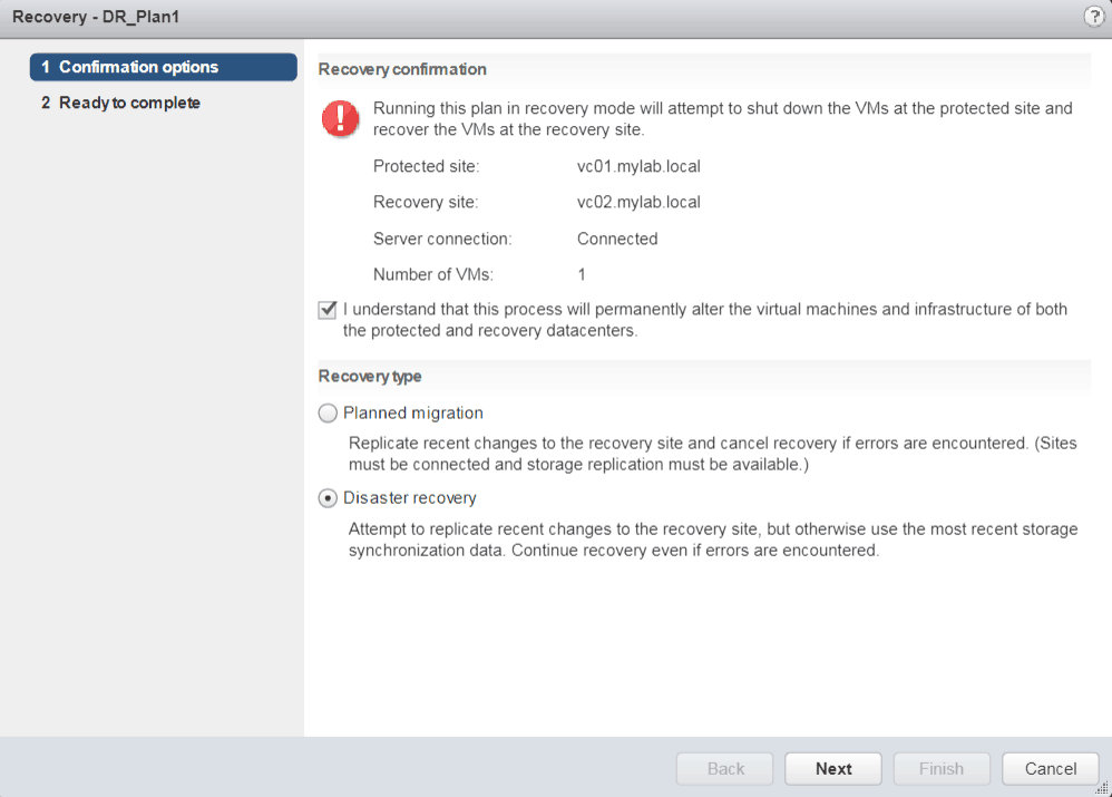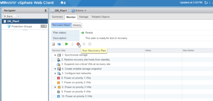 After we create a Recovery Plan, we can test it or run it. The difference is that: