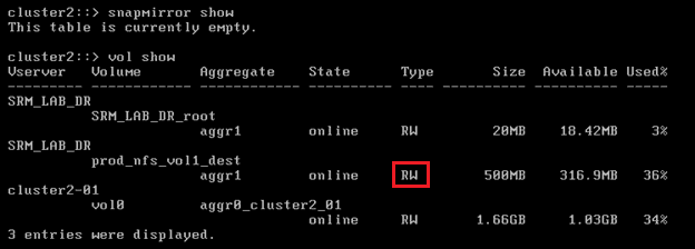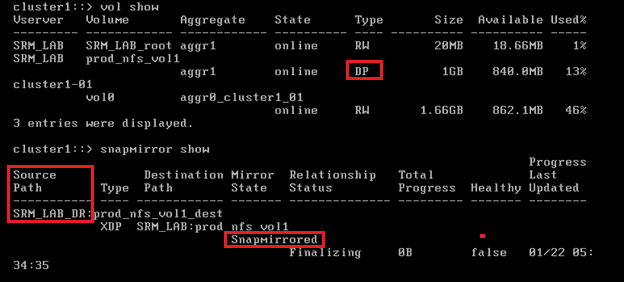 If we go to DR site of NetApp, there is a new Data Protection (DP) volume be created