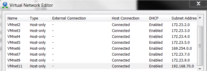 Based on our lab design and subnets plans, we need create Virtual Networks (VMnets) on VMware Workstation. The below screenshot is from my laptop. When you build a new VM, please look for the VM network requirements and you may need to add more than one network adapter.