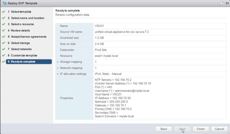 - Data Network – for NFS and iSCSI path 1 access: 172.23.2.0 (Prod Site)