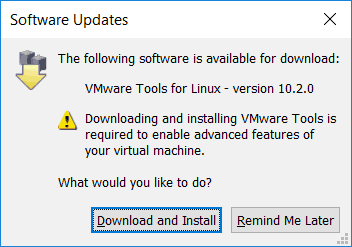 - Click Remind Me Later if prompted to download VMware Tools