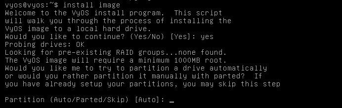 - The router is currently booting from the CD image, we need to install onto the virtual hard drive. Enter the command install image